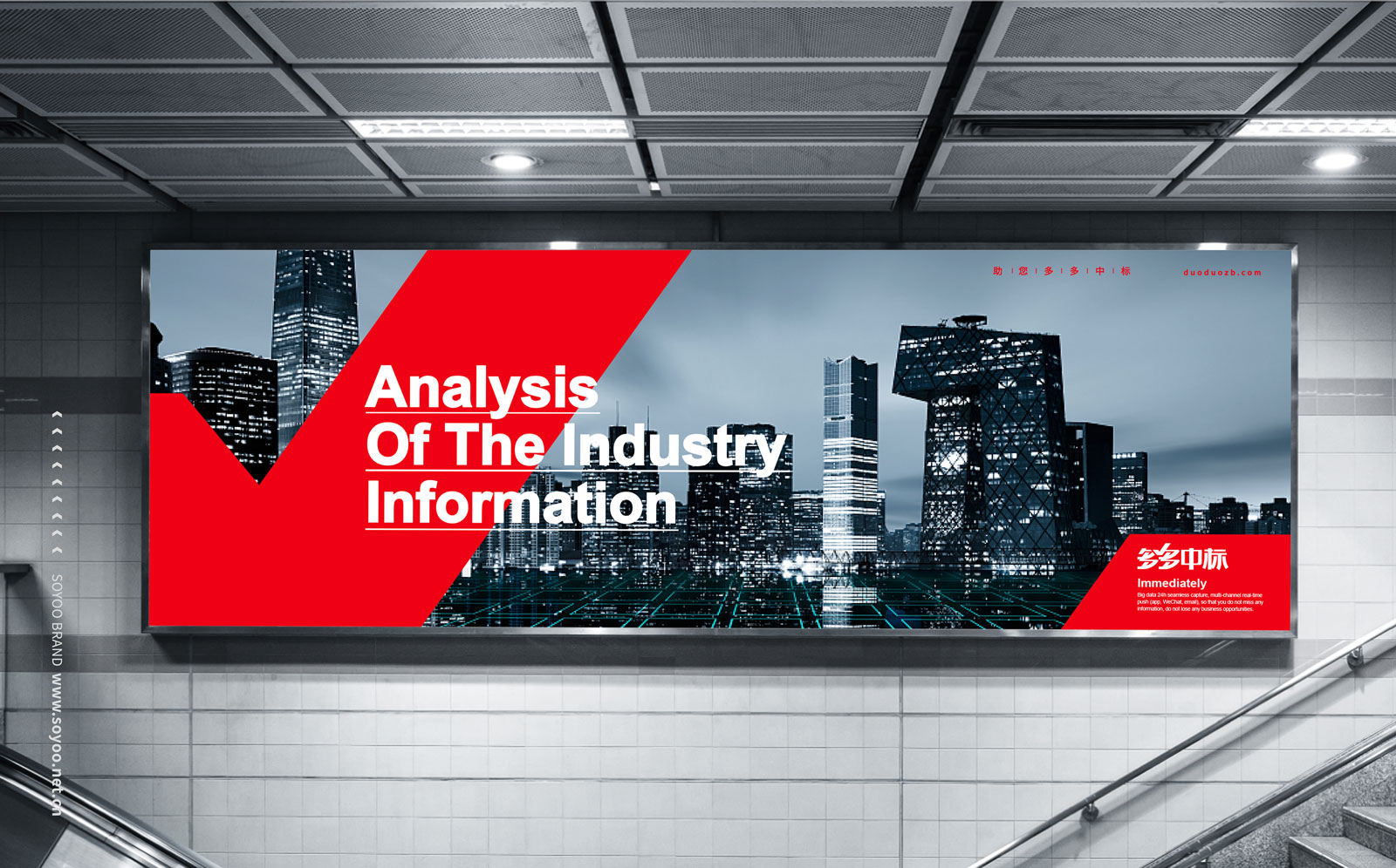 标志中加入“红色对勾”的符号,这个符号是我们小时候作业本上的对勾令人开心,是正确的选择,作为超级符号,给客户信赖感,在手机 APP 图标的运用中更加醒目。在整套品牌形象中我们选择了吉祥的红色、中标喜庆的红色,把对号和科技化、数据化结合在一起,更加科技化的打造了多多中标这套品牌形象。